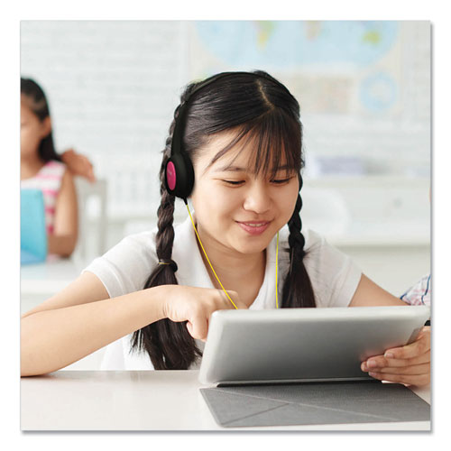 Small-size headphones are specially designed for kids. Special Volume Level Protection feature helps limit the volume, so it doesn’t exceed unsafe listening levels-regardless of how high the volume is turned up. Includes interchangeable pink, blue and silver caps. Lightweight for a comfortable fit.