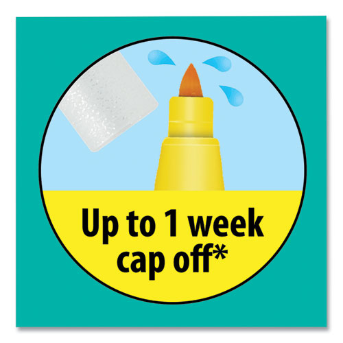 Kids® Coloring Ultra Washable Markers are an ideal choice in the home and at school for long-lasting, creative coloring and drawing projects for kids of all ages. They feature a blocked tip design that resists being pushed in, so young artists can use added pressure without smashing the marker tip. The bright, ultra-washable ink rinses easily off skin and most clothing, making cleanup simple. If the caps are accidentally left off after art time is finished, no need to worry. These markers won’t dry out for days or weeks (average cap-off times vary by color: one week to one month for most colors, four days for Brown, Madder and Atlantic Blue, 24-48 hours for Red, Pink and Purple).