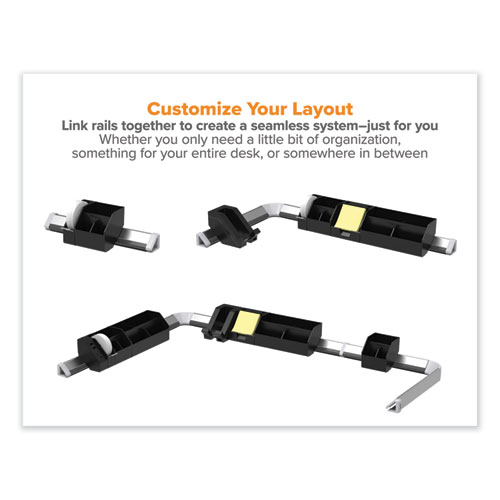 Product Details** Global Product Type Multipurpose Desktop Supplies Organizers Number of Compartments 12 Material(s) Metal,Plastic Color(s) Black Desktop Supplies Organizer Type Multipurpose Overall Width 4.02″ Overall Depth 27.76″ Overall Height 5.91″ Product Biodegradability Indicator N Product Biodegradability in Days 0 Product Compostability Indicator N Package Includes (2) 12″ Cord Management Rails,(1) 21.5″ Cord Management Rail,(1) Sshort Storage Bin,(1) Wide Storage Bin,(1) Tape Dispenser,(1) Sticky Note Holder,(1) USB Phone Dock,(1) Power Hub Pre-Consumer Recycled Content Percent 0% Post-Consumer Recycled Content Percent 0% Total Recycled Content Percent 0% Country Of Origin CN Carton Weight 40 lbs. Carton Pack Quantity 8 EA Pack Quantity 0 UPC 842048031284 UNSPSC 44111503 Shipping Weight & Item Dimensions Weight 4.32 lbs. Length 27.76 in Height 4.02 in Width 5.91 in Warranty Manufacturer’s limited three-year warranty.