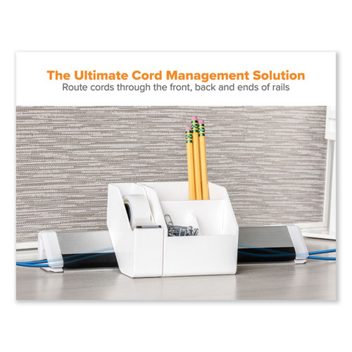 Product Details** Global Product Type Multipurpose Desktop Supplies Organizers Number of Compartments 12 Material(s) Metal,Plastic Color(s) White Desktop Supplies Organizer Type Multipurpose Overall Width 4.02″ Overall Depth 27.76″ Overall Height 5.91″ Product Biodegradability Indicator N Product Biodegradability in Days 0 Product Compostability Indicator N Package Includes (2) 12″ Cord Management Rails,(1) 21.5″ Cord Management Rail,(1) Sshort Storage Bin,(1) Wide Storage Bin,(1) Tape Dispenser,(1) Sticky Note Holder,(1) USB Phone Dock,(1) Power Hub,Mounting Hardware Pre-Consumer Recycled Content Percent 0% Post-Consumer Recycled Content Percent 0% Total Recycled Content Percent 0% Country Of Origin CN Carton Weight 40 lbs. Carton Pack Quantity 8 EA Pack Quantity 0 UPC 842048031185 UNSPSC 44111503 Shipping Weight & Item Dimensions Weight 4.32 lbs. Length 27.76 in Height 4.02 in Width 5.91 in Warranty Manufacturer’s limited three-year warranty.