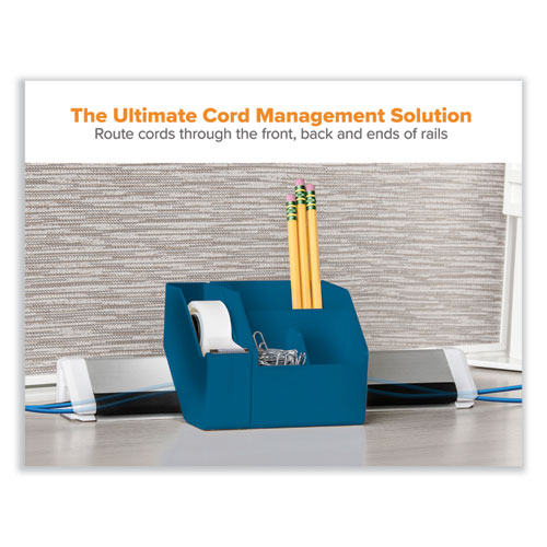Product Details** Global Product Type Multipurpose Desktop Supplies Organizers Number of Compartments 14 Material(s) Metal,Plastic Color(s) Blue Desktop Supplies Organizer Type Multipurpose Overall Width 4.02″ Overall Depth 26.06″ Overall Height 7.76″ Product Biodegradability Indicator N Product Biodegradability in Days 0 Product Compostability Indicator N Package Includes (1) 12″ Cord Management Rail,(2) 21.5″ Cord Management Rails,(2) Short Storage Bins,(1) Wide Storage Bin,(1) Tape Dispenser,(1) Sticky Note Holder,(1) USB Phone Dock,(1) Power Hub,Mounting Hardware Pre-Consumer Recycled Content Percent 0% Post-Consumer Recycled Content Percent 0% Total Recycled Content Percent 0% Country Of Origin CN Carton Weight 25 lbs. Carton Pack Quantity 4 EA Pack Quantity 0 UPC 842048031130 UNSPSC 44111503 Shipping Weight & Item Dimensions Weight 4.91 lbs. Length 26.06 in Height 4.02 in Width 7.76 in Warranty Manufacturer’s limited three-year warranty.