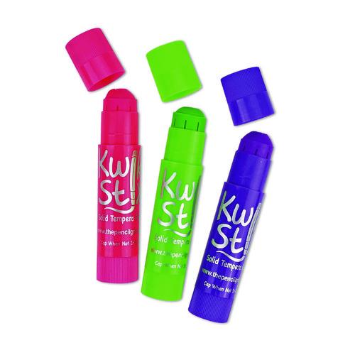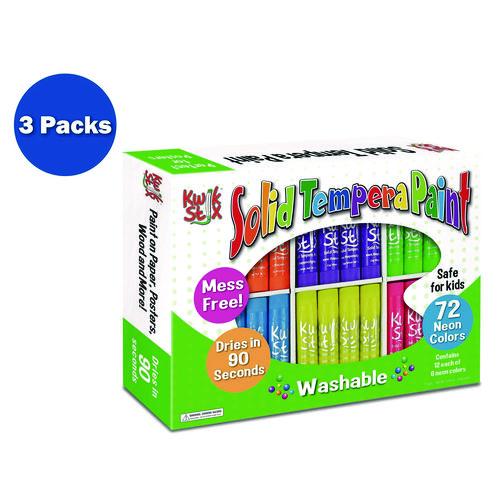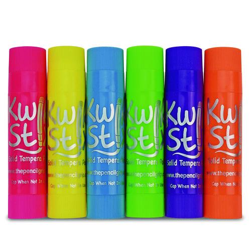 Tired of the endless mess of painting? Fear not! Kwik Stix Solid Tempera Paint sticks take the mess out of painting while keeping all the fun. Simply uncap, twist, and paint. Kwik Stix have a fast drying formula that allow them to dry in 90 seconds while still leaving a paint-like finish. No cups, smocks, water or brushes required. Kwik Stix come in assorted vibrant colors with coverage that won’t crack. Great on poster paper, cardboard, wood and canvas. Nut-, egg-, and gluten- free! Non-toxic. Washable.