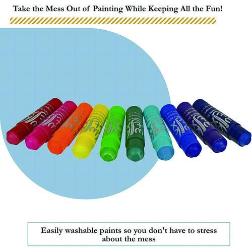 Tired of the endless mess of painting? Fear not! These solid paint sticks take the mess out of painting while keeping all the fun! Simply uncap, twist, and paint! Fast-drying formula allows them to dry in 90 seconds while still leaving a paint-like finish! No cups, smocks, water or brushes required. They come in vibrant colors with coverage that won’t crack. Great on poster paper, cardboard, wood and canvas. Nut-, egg- and gluten-free! Nontoxic and washable.