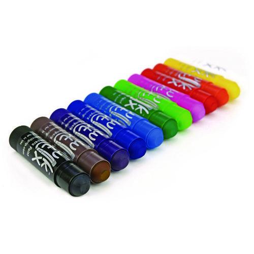 Tired of the endless mess of painting? Fear not! These solid paint sticks take the mess out of painting while keeping all the fun! Simply uncap, twist, and paint! Fast-drying formula allows them to dry in 90 seconds while still leaving a paint-like finish! No cups, smocks, water or brushes required. They come in vibrant colors with coverage that won’t crack. Great on poster paper, cardboard, wood and canvas. Nut-, egg- and gluten-free! Nontoxic and washable.