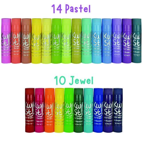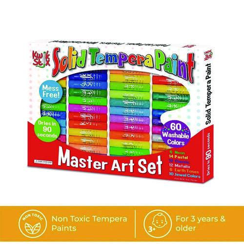 Product Details** Global Product Type Paint Sticks Color Family Multicolor Size Group Large Colored Material Type Solid Tempera Paint Age Recommendation Ages 3 and Up Crayon Size 0.7″ x 3.5″ Color(s) Assorted Color Assortment 60 Assorted Colors Temp. Range 0° F to 120° F Applicable Material Canvas,Cardboard,Eggs,Glass,Paper,Posters,Wood Length 3.5″ Width 0.7″ Product Biodegradability Indicator N Product Biodegradability in Days 0 Product Compostability Indicator N Pre-Consumer Recycled Content Percent 0% Post-Consumer Recycled Content Percent 0% Total Recycled Content Percent 0% Country Of Origin CN Carton Weight 13 lbs. Carton Pack Quantity 3 PK Pack Quantity 0 UPC 634901006900 UNSPSC 44121709 Shipping Weight & Item Dimensions Weight 13 lbs. Length 17 in Height 7 in Width 8 in