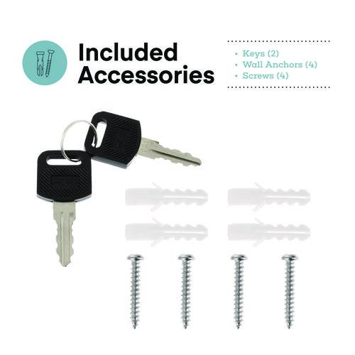 • Includes screws and is equipped with pre-drilled holes to easily and securely mount to any wall or door.