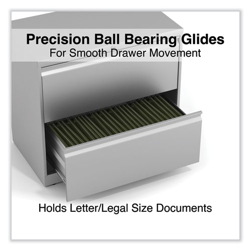 Product Details** Global Product Type Lateral File Cabinets Number of Drawers 2 Drawer Configuration File Anti-Tip Mechanism Indicator Yes Color Family Gray Pedestal Sub-Type Indicator No Caster Indicator No Anti-Tip Mechanism Counterweight,Interlocking Drawers Color(s) Light Gray Overall Width 30″ Overall Depth 18.63″ Overall Height 28″ Base Material Steel Top Material Steel Glide/Feet Indicator Yes Glide/Feet Details Four Adjustable-Leveling Glides Document Size Accommodation Legal,Letter Drawer Width-File Drawer 27″ Drawer Depth-File Drawer 16.5″ Drawer Height-File Drawer 12.38″ Series Name Alera® Lateral Series Product Biodegradability Indicator N Product Biodegradability in Days 0 Product Compostability Indicator N Compliance Standards Meets or Exceeds ANSI/BIFMA Standards Pre-Consumer Recycled Content Percent 12% Post-Consumer Recycled Content Percent 23% Total Recycled Content Percent 35% Special Features Two Drawers Country Of Origin US Carton Weight 101 lbs. Carton Pack Quantity 1 EA Pack Quantity 0 UPC 042167001001 UNSPSC 56101702 Shipping Weight & Item Dimensions Weight 101 lbs. Length 32.5 in Height 30.25 in Width 21.125 in Warranty Manufacturer’s limited five-year warranty.