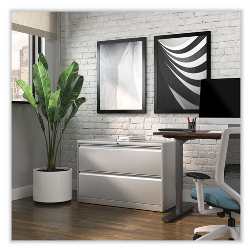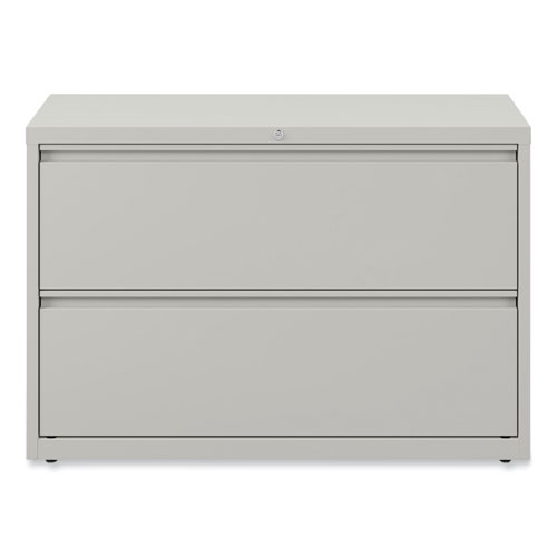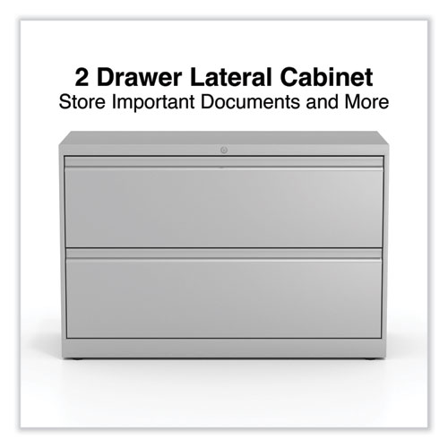 Product Details** Global Product Type Lateral File Cabinets Number of Drawers 2 Drawer Configuration File Anti-Tip Mechanism Indicator Yes Color Family Gray Pedestal Sub-Type Indicator No Caster Indicator No Anti-Tip Mechanism Counterweight,Interlocking Drawers Color(s) Light Gray Overall Width 42″ Overall Depth 18.63″ Overall Height 28″ Base Material Steel Top Material Steel Glide/Feet Indicator Yes Glide/Feet Details Four Adjustable-Leveling Glides Document Size Accommodation Legal,Letter Drawer Width-File Drawer 39″ Drawer Depth-File Drawer 16.5″ Drawer Height-File Drawer 12.38″ Series Name Alera® Lateral Series Product Biodegradability Indicator N Product Biodegradability in Days 0 Product Compostability Indicator N Compliance Standards Meets or Exceeds ANSI/BIFMA Standards Pre-Consumer Recycled Content Percent 12% Post-Consumer Recycled Content Percent 23% Total Recycled Content Percent 35% Special Features Two Drawers Country Of Origin US Carton Weight 145 lbs. Carton Pack Quantity 1 EA Pack Quantity 0 UPC 042167001193 UNSPSC 56101702 Shipping Weight & Item Dimensions Weight 145 lbs. Length 44.5 in Height 30.25 in Width 21.125 in Warranty Manufacturer’s limited five-year warranty.