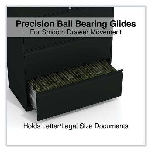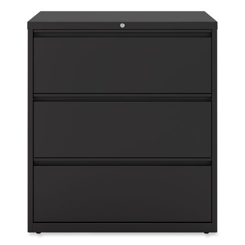 Product Details** Global Product Type Lateral File Cabinets Number of Drawers 3 Drawer Configuration File Anti-Tip Mechanism Indicator Yes Color Family Black Pedestal Sub-Type Indicator No Caster Indicator No Anti-Tip Mechanism Counterweight,Interlocking Drawers Color(s) Black Overall Width 36″ Overall Depth 18.63″ Overall Height 40.25″ Base Material Metal Top Material Metal Glide/Feet Indicator Yes Glide/Feet Details Four Fixed-Height Glides Document Size Accommodation Legal,Letter,A4,A5 Series Name Alera® Lateral Series Product Biodegradability Indicator N Product Biodegradability in Days 0 Product Compostability Indicator N Compliance Standards Level 2 Certified,Meets or Exceeds ANSI/BIFMA Standards,Meets or Exceeds ISTA Performance Standards,SCS Indoor Advantage Certified,SCS Indoor Advantage Gold Certified Pre-Consumer Recycled Content Percent 12% Post-Consumer Recycled Content Percent 24% Total Recycled Content Percent 36% Special Features Three Drawers Country Of Origin US Carton Weight 154 lbs. Carton Pack Quantity 1 EA Pack Quantity 0 UPC 042167001056 UNSPSC 44111515 Shipping Weight & Item Dimensions Weight 154 lbs. Length 38.5 in Height 42.5 in Width 21.125 in Warranty Manufacturer’s limited five-year warranty.