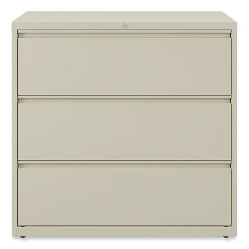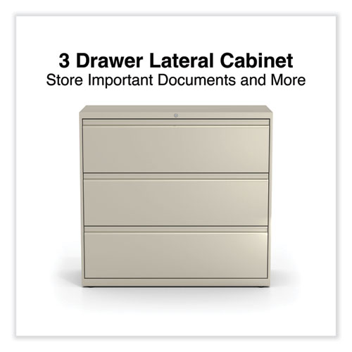 Product Details** Global Product Type Lateral File Cabinets Number of Drawers 3 Drawer Configuration File Anti-Tip Mechanism Indicator Yes Color Family Beige Pedestal Sub-Type Indicator No Caster Indicator No Anti-Tip Mechanism Counterweight,Interlocking Drawers Color(s) Putty Overall Width 42″ Overall Depth 18.63″ Overall Height 40.25″ Base Material Metal Top Material Metal Glide/Feet Indicator Yes Glide/Feet Details Four Fixed-Height Glides Document Size Accommodation Legal,Letter,A4,A5 Series Name Alera® Lateral Series Product Biodegradability Indicator N Product Biodegradability in Days 0 Product Compostability Indicator N Compliance Standards Level 2 Certified,Meets or Exceeds ANSI/BIFMA Standards,Meets or Exceeds ISTA Performance Standards,SCS Indoor Advantage Certified,SCS Indoor Advantage Gold Certified Pre-Consumer Recycled Content Percent 12% Post-Consumer Recycled Content Percent 24% Total Recycled Content Percent 36% Special Features Three Drawers Country Of Origin US Carton Weight 174 lbs. Carton Pack Quantity 1 EA Pack Quantity 0 UPC 042167001247 UNSPSC 44111515 Shipping Weight & Item Dimensions Weight 174 lbs. Length 44.5 in Height 42.5 in Width 21.125 in Warranty Manufacturer’s limited five-year warranty.