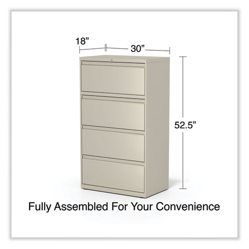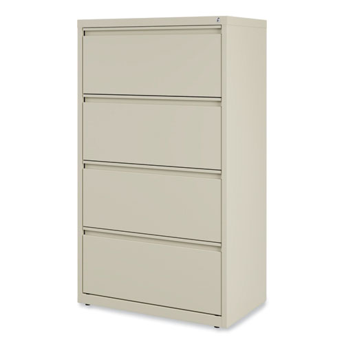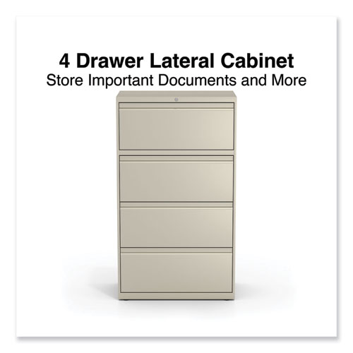 Product Details** Global Product Type Lateral File Cabinets Number of Drawers 4 Drawer Configuration File Anti-Tip Mechanism Indicator Yes Color Family Beige Pedestal Sub-Type Indicator No Caster Indicator No Anti-Tip Mechanism Counterweight,Interlocking Drawers Color(s) Putty Overall Width 30″ Overall Depth 18.63″ Overall Height 52.5″ Base Material Steel Top Material Steel Glide/Feet Indicator Yes Glide/Feet Details Four Adjustable-Leveling Glides Document Size Accommodation Legal,Letter Drawer Width-File Drawer 27″ Drawer Depth-File Drawer 16.5″ Drawer Height-File Drawer 12.38″ Series Name Alera® Lateral Series Product Biodegradability Indicator N Product Biodegradability in Days 0 Product Compostability Indicator N Compliance Standards Meets or Exceeds ANSI/BIFMA Standards Pre-Consumer Recycled Content Percent 12% Post-Consumer Recycled Content Percent 23% Total Recycled Content Percent 35% Special Features Four Drawers Country Of Origin US Carton Weight 148 lbs. Carton Pack Quantity 1 EA Pack Quantity 0 UPC 042167001049 UNSPSC 56101702 Shipping Weight & Item Dimensions Weight 148 lbs. Length 32.5 in Height 54.75 in Width 21.125 in Warranty Manufacturer’s limited five-year warranty.