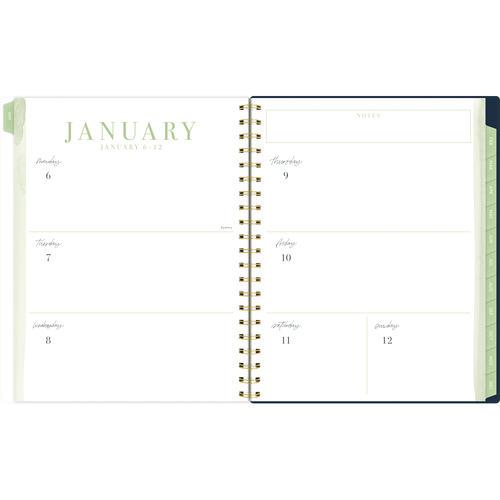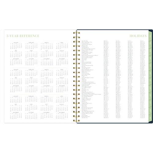 Product Details** Global Product Type Appointment Book/Personal Organizers Dated Yes Academic Year No Calendar Format Weekly/Monthly Edition Year 2025 Calendar Term 12-Month (Jan to Dec) Binding Type Wire-O Color Family Multicolor Refillable No Calendar Spread Format One Week per Two-Page Spread,One Month per Two-Page Spread Julian Dates No Size (Bound-Side First) 11 x 9.25 Binding Details Twin-Wire Cover Theme Leah Bisch Floral Artwork Cover Color(s) Blue/White/Gold Cover Material(s) Poly Binding Color(s) Gold Appointment Ruling Open Scheduling Calendar Reference Blocks One Past Month,One Future Month Separate Sections Annual Planning Pages,Four-Year Holiday List,Future Planning Pages,(7) Ruled Notes Pages,Three-Year Reference Calendar Sheet Color(s) White/Gold Pocket Details (1) Two-Sided Poly Storage Pocket Reversible No Seasonal Availability Yes Age Recommendation Ages 12 and Up Product Biodegradability Indicator N Product Biodegradability in Days 0 Product Compostability Indicator N Pre-Consumer Recycled Content Percent 0% Post-Consumer Recycled Content Percent 0% Total Recycled Content Percent 0% Country Of Origin VN Carton Weight 14 lbs. Carton Pack Quantity 12 EA Pack Quantity 0 UPC 038576349223 UNSPSC 44112004 Shipping Weight & Item Dimensions Weight 1.208 lbs. Length 0.625 in Height 11 in Width 9.25 in