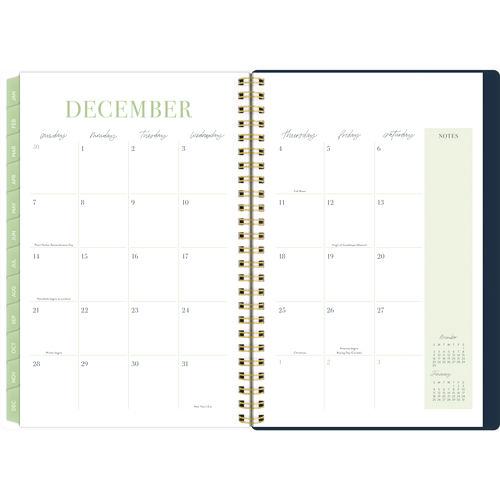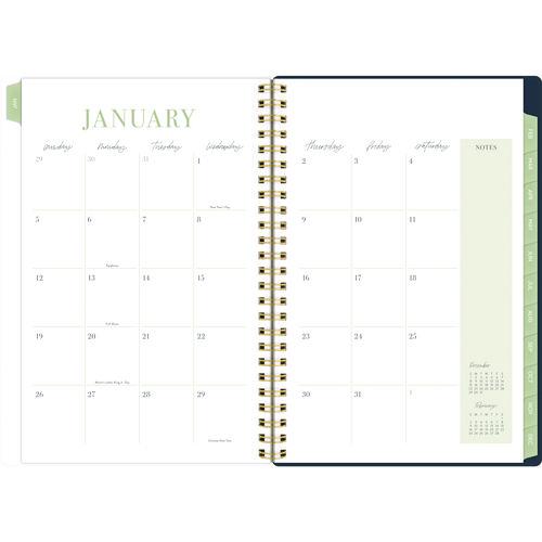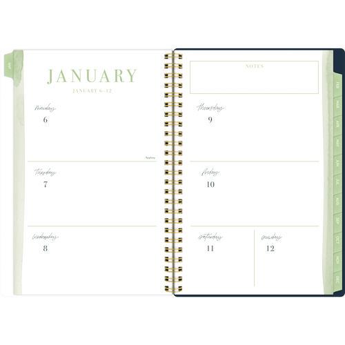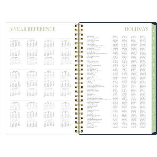 Product Details** Global Product Type Appointment Book/Personal Organizers Dated Yes Academic Year No Calendar Format Weekly/Monthly Edition Year 2025 Calendar Term 12-Month (Jan to Dec) Binding Type Wire-O Color Family Multicolor Refillable No Calendar Spread Format One Week per Two-Page Spread,One Month per Two-Page Spread Julian Dates No Size (Bound-Side First) 8.5 x 6.38 Binding Details Twin-Wire Cover Theme Leah Bisch Floral Artwork Cover Color(s) Blue/White/Gold Cover Material(s) Poly Binding Color(s) Gold Page Theme Floral Appointment Ruling Open Scheduling Calendar Reference Blocks One Past Month,One Future Month Separate Sections Annual Planning Pages,Four-Year Holiday List,Future Planning Pages,(7) Ruled Notes Pages,Three-Year Reference Calendar Sheet Color(s) White/Gold Pocket Details (1) Two-Sided Poly Storage Pocket Reversible No Seasonal Availability Yes Age Recommendation Ages 12 and Up Product Biodegradability Indicator N Product Biodegradability in Days 0 Product Compostability Indicator N Package Includes (1) Sheet of Labeling Stickers Pre-Consumer Recycled Content Percent 0% Post-Consumer Recycled Content Percent 0% Total Recycled Content Percent 0% Country Of Origin VN Carton Weight 8 lbs. Carton Pack Quantity 12 EA Pack Quantity 0 UPC 038576349254 UNSPSC 44112004 Shipping Weight & Item Dimensions Weight 0.625 lbs. Length 0.688 in Height 8.5 in Width 6.375 in
