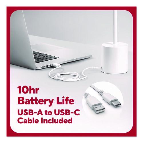 Product Details** Global Product Type Desk & Task Lamps Light Type LED Lamp Shade Color White Base Color White Height 13.5″ Neck Type Candlestick Lamp Shade Material Metal Width 3.1″ Depth 3.1″ Base Diameter 3.1″ Lamp Shade Diameter 3.1″ Switch Type Touch Switch Settings 3k Warm-Light,4k Neutral-Light,5k Daylight-Cool Product Biodegradability Indicator N Product Biodegradability in Days 0 Product Compostability Indicator N Package Includes Type-A to Type-C (USB-A to USB-C) Charging Cable Pre-Consumer Recycled Content Percent 0% Post-Consumer Recycled Content Percent 0% Total Recycled Content Percent 0% Country Of Origin IN Carton Weight 12 lbs. Carton Pack Quantity 8 EA Pack Quantity 0 UPC 718103437738 UNSPSC 39111510 Shipping Weight & Item Dimensions Weight 1.042 lbs. Length 15.015 in Height 4 in Width 4.008 in Warranty Manufacturer’s 1-year total product replacement warranty.