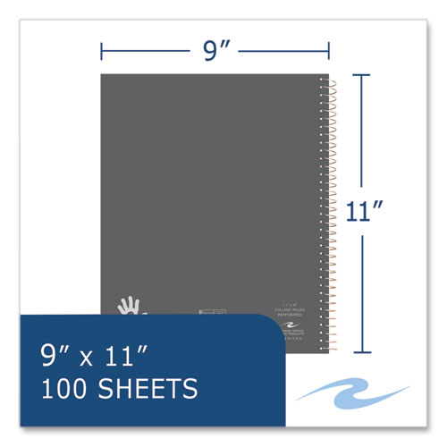 Product Details** Global Product Type General Purpose Notebooks Pocket Sized No Book-Binding Type Spiral Coil Color Family Multicolor Number of Subjects/Sections 1 Sheet Size (Bound-Side First) 11 x 8.5 Sheet Rule/Format Type Medium/College Rule Book-Binding Details Coil-Lock Spiral Wire Book-Binding Edge Side Cover Color Randomly Assorted Cover Color Assortment Blue,Burgundy,Gray,Green,Red,White Book-Spine Length 11″ Book Width 9″ Front-Cover Material Laminated Finish Sheets per Book/Journal 100 Sheet Color White Sheet Ruling Size 9/32″ Sheet-Ruling Color Blue Hole-Punch Details Side: 3-Hole Sheet Perforation Details Micro-Perforation Sheet Basis Weight (lb) 15 lb Bond Number of Pockets 1 Pocket Details Interior Front Cover Pocket Dated No Product Biodegradability Indicator N Product Biodegradability in Days 0 Product Compostability Indicator N Pre-Consumer Recycled Content Percent 0% Post-Consumer Recycled Content Percent 0% Total Recycled Content Percent 0% Disclaimer Statement Cover color is randomly selected when shipped—item may not ship as shown. Country Of Origin US Carton Weight 25 lbs. Carton Pack Quantity 24 EA Pack Quantity 0 UPC 000000000000 UNSPSC 14111514 Shipping Weight & Item Dimensions Weight 24.64 lbs. Length 11.25 in Height 10 in Width 10.25 in