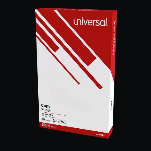 Universal® copy paper is the economical choice for all your business printing and copying needs. Versatile white paper that’s reliable for everyday copying, high-speed volume applications, in-house reports, duplicating documents, and internal correspondence. Compatible with all office equipment, including copiers, laser printers, and fax machines. Laser and desktop inkjet guaranteed on cut-size cartons. Archival quality and acid-free. 92 bright white, 20 lb. paper.