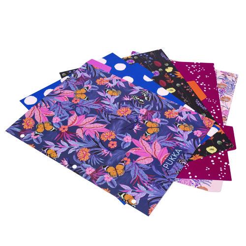 The PUKKA PAD® Reversible Dividers in Letter Size are an organization-obsessed person’s dream. Coming in an assorted pack of five you get three beautifully unique floral dividers and two spotted dividers perfect for splitting up classes, subjects or projects. Our dividers pair perfectly with our Pukka Bloom Roll bound Binder. No more getting your documents mixed up. Dividers are three-hole punched and made of 250 gsm board. People expect more from PUKKA PAD® products and that’s what they get.