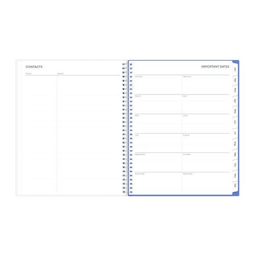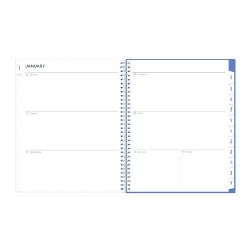 Product Details** Global Product Type Appointment Book/Personal Organizers Dated Yes Academic Year No Calendar Format Weekly/Monthly Edition Year 2025 Calendar Term 12-Month (Jan to Dec) Binding Type Wire-O Color Family Multicolor Refillable No Calendar Spread Format One Week per Two-Page Spread,One Month per Page Julian Dates Yes Size (Bound-Side First) 11 x 8.5 Binding Details Twin-Wire Cover Theme Floral Artwork Cover Color(s) White/Blue/Green Cover Material(s) Polypropylene Binding Color(s) Silver Appointment Ruling Open Scheduling Calendar Reference Blocks One Past Month,One Future Month Separate Sections (6) Bonus Past Monthly Spreads (July-Dec),Holidays,Notes/Memos Page,Important Dates by Month,Contacts Page,US Map,Yearly Overview Sheets per Calendar/Planner 70 Sheet Color(s) White Pocket Details (1) Two-Sided Interior Storage Pocket Reversible No Seasonal Availability Yes Product Biodegradability Indicator N Product Biodegradability in Days 0 Product Compostability Indicator N Pre-Consumer Recycled Content Percent 0% Post-Consumer Recycled Content Percent 0% Total Recycled Content Percent 0% Disclaimer Statement This product was made using wood sourced from a certified managed forest. Country Of Origin CN Carton Weight 7 lbs. Carton Pack Quantity 6 EA Pack Quantity 0 UPC 699931913741 UNSPSC 44112004 Shipping Weight & Item Dimensions Weight 1 lbs. Length 9.25 in Height 11.125 in Width 0.625 in