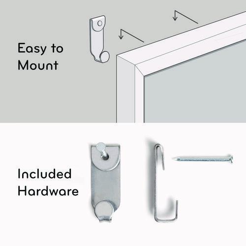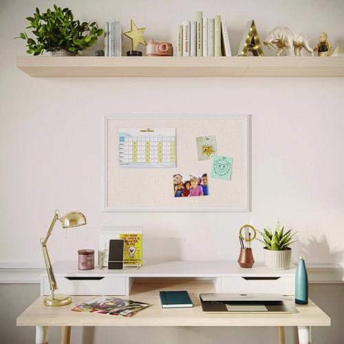 This fashionable and functional bulletin board combines personality with productivity and features a farmhouse wood style frame and an elevated linen surface that adds a touch of sophistication to any home, classroom, or office. There’s plenty of space to pin and display important notes, messages, pictures, memos, calendars, menus, reminders, and more. The dense board backing material keeps the surface pristine by hiding push-pin holes, ensuring a clean and flawless surface even after repeated use. Whether you hang it vertically or horizontally, this tack board has hassle-free mounting hardware and instructions for easy installation.