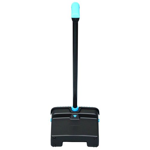 Easy-lock system keeps the handle upright and in place while you sweep. Innovative footrest pads and angled base provide stability. Large pan capacity and tapered front edge simplify dust and debris pick-up. Broom-cleaning teeth on the yoke allow you to clean your bristles as you go.