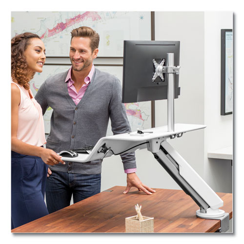 Product Details** Global Product Type Desktop-Mounted Sit/Stand Workstations Worksurface Shape Rectangular Color Family White Pedestal Count 0 Keyboard/Mouse Platform Indicator Yes CPU Holder/Platform Indicator No Number of Drawers 0 Series Name Fellowes® Lotus™ RT Worksurface/Base Color White Worksurface Material ABS Plastic,Wood Worksurface Width 72″ Worksurface Depth 30″ Base Material ABS Plastic,Steel Overall Width (Max) 48″ Overall Depth (Max) 23.75″ Overall Height (Min) 42.2″ Overall Height (Max) 49.2″ Lift Range (Max) 17″ Number of Shelves 0 Shelf Width 28.74″ Shelf Depth 8.93″ VESA Mount Standard VESA MIS-D Rotation (Degrees) 180° Keyboard/Mouse Platform Color White Keyboard Platform Width (Max) 28.74″ Keyboard Platform Depth (Max) 8.93″ Weight (Fully Assembled) 35 lb Product Biodegradability Indicator N Product Biodegradability in Days 0 Product Compostability Indicator N Compliance Standards BIFMA Tested Pre-Consumer Recycled Content Percent 0% Post-Consumer Recycled Content Percent 0% Total Recycled Content Percent 0% Country Of Origin CN Carton Weight 50 lbs. Carton Pack Quantity 1 EA Pack Quantity 0 UPC 043859737031 UNSPSC 56111500 Shipping Weight & Item Dimensions Weight 50 lbs. Length 39.5 in Height 28.5 in Width 10.5 in Warranty Manufacturer’s five-year warranty.