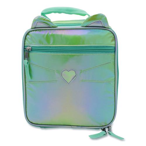This Accessory Innovations lunch bag is perfect for back to school and beyond. This super cute lunch bag is made of iridescent poly nylon with 3D ears, PU nose applique, and embroidered whiskers. The bag has a large zip-closure main compartment with plenty of room for sandwiches, drinks, snacks, etc.