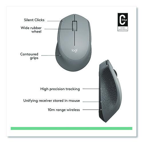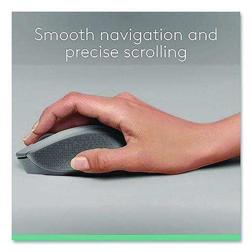 With the same click feel and over a 90% reduction in click noise compared to classic mice, M330 offers a quiet experience for you and those around you. It has a long-lasting 24-month battery life with auto-sleep and a powerful 33 ft wireless range with 128-bit encryption between the mouse and the receiver. Designed with contoured grips made of soft rubber for total comfort. Just plug the tiny USB receiver into a USB port. Finally, the Logitech® Advanced Optical Tracking guarantees smooth and precise moves on almost any surface.