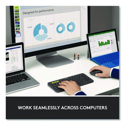 This wireless mouse features superior device connectivity with the ability to connect via both USB port and Bluetooth. The sculpted, ergonomic construction ensures comfortable use and puts the scroll wheel and buttons within easy reach. For even more personalized flexibility, the buttons are fully customizable. Simply press one button to effortlessly switch between three different computers without having to change any connections. To reduce office waste, this mouse can last as long as 24 months on one AA battery.