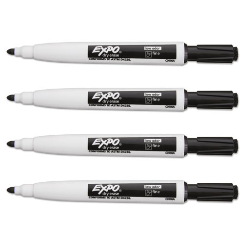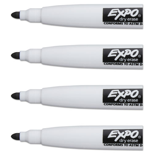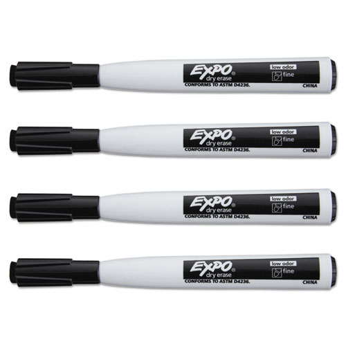 Magnetic Dry Erase Marker, Fine Bullet Tip, Black, 4/Pack
