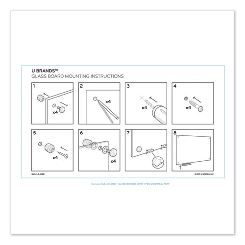 Frosted white, magnetic glass dry erase board is the perfect, functional solution for frequent and heavy-use areas in offices, classrooms and commercial spaces. Its clean, contemporary lines add a touch of style to your space, too. Modern, frameless design enables you to hang multiple glass boards adjacent to one another to expand your writing surface to fit your needs. Continuously outperforming all melamine and painted steel alternatives, this board’s premium, stain- and ghost-proof tempered glass magnetic writing surface erases easily with a simple board eraser (one U Brands Microfiber Board Eraser included). After heavy, continuous use, simply use any dry-erase wet wipe or spray to make the surface look new again (sprays and wipes sold separately). Ferrous magnetic surface accommodates high-energy rare earth magnets (one U Brands High-Energy Rare Earth Magnet included). And though all dry erase and glass-board markers are compatible with the board’s surface, U Brands Liquid Glass Markers provide the ultimate writing and erasability experience (six U Brands Liquid Glass Markers included). Universal mounting system allows the board to be hung vertically or horizontally, and all wall hanging hardware is hidden under the mounting bolts to provide a sleek, modern appearance. Packaged with extra supportive corrugate material for added safety during shipping and handling (corrugated material is recyclable).