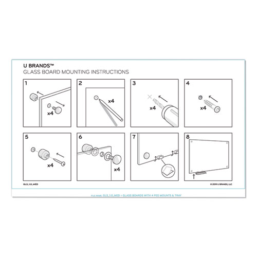 Frosted white, magnetic glass dry erase board is the perfect, functional solution for frequent and heavy-use areas in offices, classrooms and commercial spaces. Its clean, contemporary lines add a touch of style to your space, too. Modern, frameless design enables you to hang multiple glass boards adjacent to one another to expand your writing surface to fit your needs. Continuously outperforming all melamine and painted steel alternatives, this board’s premium, stain- and ghost-proof tempered glass magnetic writing surface erases easily with a simple board eraser (one U Brands Microfiber Board Eraser included). After heavy, continuous use, simply use any dry-erase wet wipe or spray to make the surface look new again (sprays and wipes sold separately). Ferrous magnetic surface accommodates high-energy rare earth magnets (one U Brands High-Energy Rare Earth Magnet included). And though all dry erase and glass-board markers are compatible with the board’s surface, U Brands Liquid Glass Markers provide the ultimate writing and erasability experience (six U Brands Liquid Glass Markers included). Universal mounting system allows the board to be hung vertically or horizontally, and all wall hanging hardware is hidden under the mounting bolts to provide a sleek, modern appearance. Packaged with extra supportive corrugate material for added safety during shipping and handling (corrugated material is recyclable).