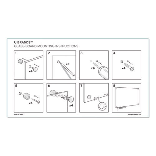 Frosted white, magnetic glass dry erase board is the perfect, functional solution for frequent and heavy-use areas in offices, classrooms and commercial spaces. Its clean, contemporary lines add a touch of style to your space, too. Modern, frameless design enables you to hang multiple glass boards adjacent to one another to expand your writing surface to fit your needs. Continuously outperforming all melamine and painted steel alternatives, this board’s premium, stain- and ghost-proof tempered glass magnetic writing surface erases easily with a simple board eraser (one U Brands Microfiber Board Eraser included). After heavy, continuous use, simply use any dry-erase wet wipe or spray to make the surface look new again (sprays and wipes sold separately). Ferrous magnetic surface accommodates high-energy rare earth magnets (one U Brands High-Energy Rare Earth Magnet included). And though all dry erase and glass-board markers are compatible with the board’s surface, U Brands Liquid Glass Markers provide the ultimate writing and erasability experience (six U Brands Liquid Glass Markers included). Universal mounting system allows the board to be hung vertically or horizontally, and all wall hanging hardware is hidden under the mounting bolts to provide a sleek, modern appearance. Packaged with extra supportive corrugate material for added safety during shipping and handling (corrugated material is recyclable).
