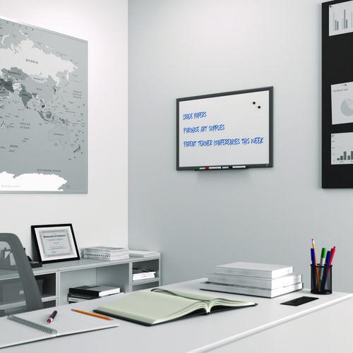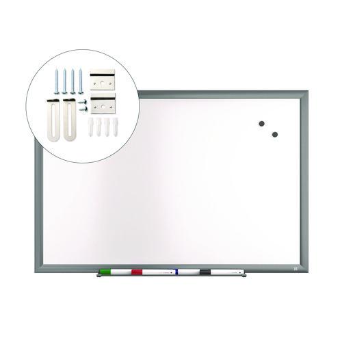 Product Details** Global Product Type Dry Erase Boards – Wall-Mount Board Surface Type(s) Dry Erase Magnetic Board Surface Yes Surface Material Porcelain Surface Color White Dedicated Projection Screen No Flipchart Mounting System No Supports Custom Surface Formatting No Frame Material Aluminum Frame Color/Finish Gray/Natural Board Width 36″ Board Depth 0.67″ Board Height 24″ Preformatted Board Surface No Mounting Details Wall-Mount Hardware (Included) Product Biodegradability in Days 0 Package Includes Mounting Kit,Accessory Tray,(4) Assorted Chisel Tip Dry Erase Markers Pre-Consumer Recycled Content Percent 0% Post-Consumer Recycled Content Percent 0% Total Recycled Content Percent 0% Country Of Origin CN Carton Weight 12 lbs. Carton Pack Quantity 1 EA Pack Quantity 0 UPC 718103425834 UNSPSC 44111905 Shipping Weight & Item Dimensions Weight 11.85 lbs. Length 39.5 in Height 2 in Width 27.5 in Warranty Manufacturer’s limited seven-year warranty.