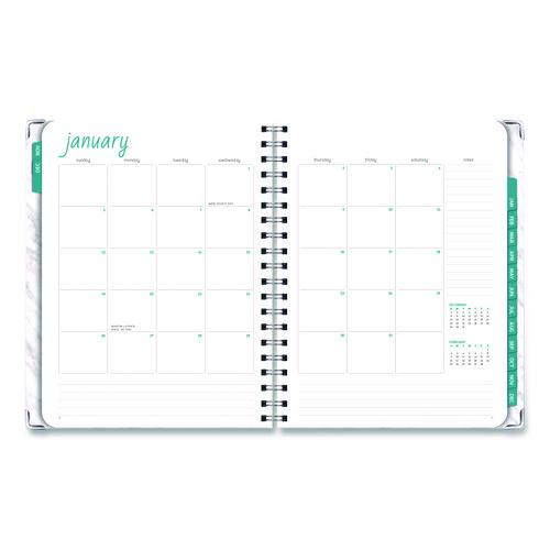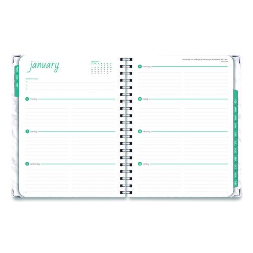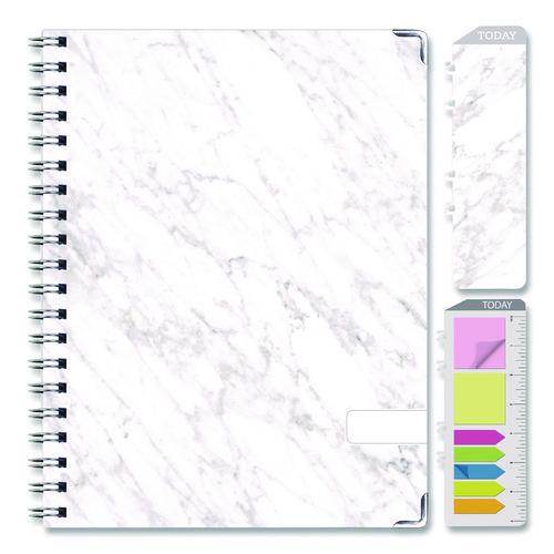 Organize your life throughout the year with the Marble Weekly/Monthly Planner. Flexible Monday through Sunday spreads feature a priorities checklist as well as ruled space for daily appointments, tasks, takeaways and more. Tabbed monthly spreads feature generously sized daily blocks and a separate notes column. Ruled notes section in the back of the book accommodates anything that doesn’t quite fit into any one week, any one month. Attractive and understated marble design cover with metal corners and twin-wire binding provide a professional look.