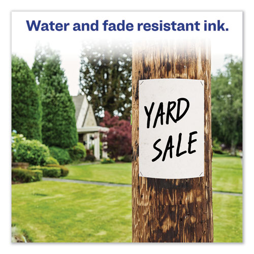 Leave your mark with these remarkable, water-, fade- and wear-resistant markers. Their ink sets into your chosen media quickly but won’t dry out, even if you leave the cap off for up to 30 min. And as these large markers hold over 30% more ink than comparably sized alternatives, long-lasting performance is guaranteed. Durable tip eliminates the potential for fraying and is designed to leave clean, bold text. Ideal for almost every conceivable surface: paper, cardboard, metal, PVC, concrete, plastic, ceramics and more, they’re an excellent choice for just about any scenario, from marking construction materials to labeling sports equipment to creating yard sale signs. Handy pocket clip makes it easy to carry a MARKS A LOT® marker wherever you go, whether you’re off to the classroom, office, jobsite, factory floor or simply heading home. Low-odor and non-toxic.