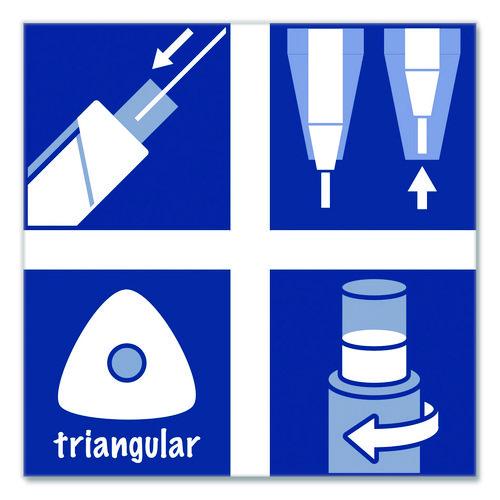 Staedtler® Triplus mechanical HB #2 pencil. Triangular shape offers fatigue-free writing. Extra long screw in/out eraser for precision erasing.