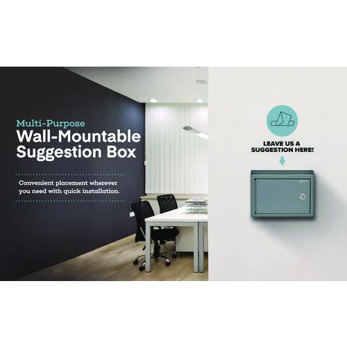 Designed to hold keys, cash, envelopes, interoffice mail and other important materials that need to be dropped off after hours. Constructed of durable, heavy-gauge steel to provide long-lasting strength, this mailbox is designed to last you well into the future. It’s furnished using a powder-coated, scratch- and chip-resistant finish to minimize signs of normal wear and tear that would normally accumulate from daily use. It can be placed in any company to get suggestions and/or comments from your employees or customers. Knowing that their comments will be kept confidential and that they can remain anonymous allows people to voice their greatest concerns. To succeed in business, communication is key. It’s also ideal for retail stores, rental facilities, customer service counters, manufacturing plants, auto dealers and other facilities, featuring a 0.25″ slot on top that accepts letters, checks, keys and cash. In addition, it boasts a built-in storage compartment that can be used to store blank forms, notepads, ballots and more. A secure, door-mounted disc tumbler lock is used to prevent theft, ensuring the items inside are safe and secure. Meanwhile, two keys allow for quick, easy access to open the box and remove the items inside, making more room for additional material. Finally, pre-drilled holes and included screws allow for quick and easy installation on any wall.