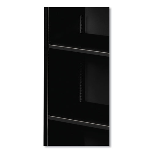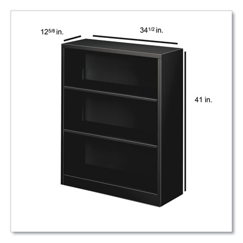 Product Details** Global Product Type Standard Multi-Shelf Bookcases Color Family Black Material(s) Steel Number of Shelves 3 Overall Height 41″ Overall Width 34.5″ Color(s) Black Overall Depth 12.63″ Edge Detail Profile Square Edge Product Biodegradability in Days 0 Compliance Standards Level 2 Certified,Meets or Exceeds ANSI/BIFMA Standards,SCS Indoor Advantage Certified,SCS Indoor Advantage Gold Certified Pre-Consumer Recycled Content Percent 12% Post-Consumer Recycled Content Percent 24% Total Recycled Content Percent 36% Special Features Three Shelves—Two Adjustable Country Of Origin US Carton Weight 57 lbs. Carton Pack Quantity 1 EA Pack Quantity 0 UPC 089192008087 UNSPSC 56101507 Shipping Weight & Item Dimensions Weight 57 lbs. Length 13 in Height 41 in Width 35 in Warranty Backed by the HON Full Lifetime Warranty.