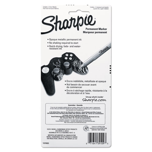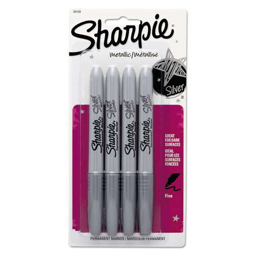 Metallic Fine Point Permanent Markers, Fine Bullet Tip, Metallic Silver, 4/PackMetallic Fine Point Permanent Markers, Fine Bullet Tip, Metallic Silver, 4/Pack