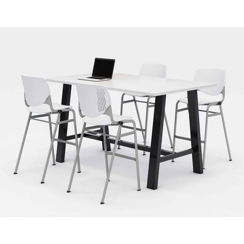 Midtown Bistro Dining Table with Four White Kool Barstools, 36 x 72 x 41, Designer WhiteMidtown Bistro Dining Table with Four White Kool Barstools, 36 x 72 x 41, Designer White