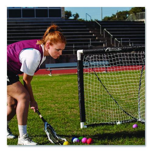 The Champion Sports Mini Lacrosse Goal is designed for younger players to practice their skills and learn to play the game anywhere. Made with sturdy polypropylene plastic and 1.5″ OD pipe, this mini lacrosse goal is durable enough to withstand regular play, making it suitable for gym classes or leagues. With a weighted base, this mini lacrosse net is stable and sturdy on both gymnasium floors and outdoor playing surfaces.