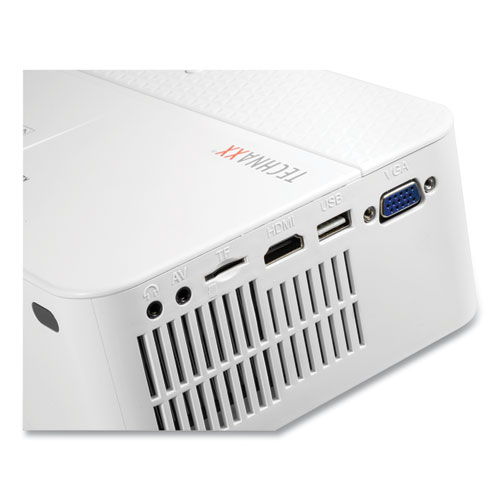 This projector with a powerful 1,800 lm LED lamp and multimedia player is perfect for home or smart space. Projection size is from 32″ to 176″. Integrated 2 W stereo speakers. Manual focus adjustment is very convenient. Long LED lifetime 40,000 hours. Connectable with computer, notebook, tablet, smartphone and gaming consoles via AV, VGA, or HDMI. It can make playback of video, photo and audio files from USB, MicroSD or external hard disk a breeze. Remote control is included.