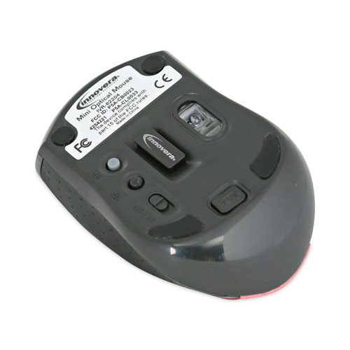 Innovera® Mini Wireless Optical Mouse is the perfect mouse for your on-the-go computer needs. There’s no need to use a difficult to use track mousepad when this mini wireless mouse can be packed into a briefcase or laptop bag and taken anywhere. It includes a micro USB receiver that is small enough to stay plugged into your laptop. Made using enhanced optical technology which allows you to track on more surfaces and eliminates slowdowns.