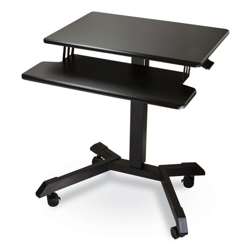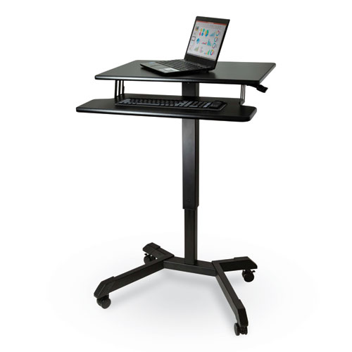 Wherever you need to go, your desk can follow. The large worksurface can accommodate a computer and desktop necessities such as files, notes, calculator, or phone. Keyboard tray allows for placement of separate keyboard and mouse. This multifunctional desk can be used in multiple settings, including office, classroom, production set, crafting, workshop, warehouse, flea market, lectern, healthcare, and any other application where mobility and variable height adjustment helps get the job done.