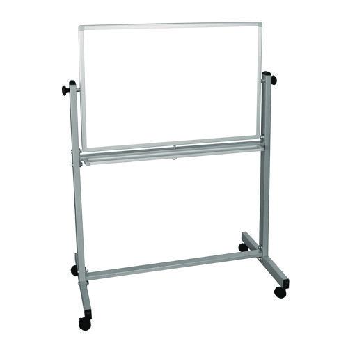 Built for brainstorming, teaching or organizing ideas and information, this Luxor mobile magnetic dry erase board doubles the writing space and delivers the durable mobility needed for dynamic workspaces. A slender-yet-sturdy frame provides a professional appearance and rolling casters make it easy move around a room. To flip the board, simply loosen the side knobs and disengage the spring-loaded locking clip. Need to display charts, papers or photos? Use the magnetic surface as a bulletin board. Look no further for a high-quality, affordable mobile marker board.