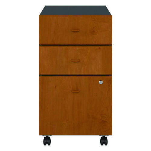 Product Details** Global Product Type Vertical Desk Pedestals Number of Drawers 3 Drawer Configuration Box/Box/File Anti-Tip Mechanism Indicator No Color Family Cherry Pedestal Sub-Type Indicator Yes Caster Indicator Yes Color(s) Natural Cherry/Slate Gray Pedestal Count 1 Pedestal Orientation Left/Right Pedestal Types Freestanding: Full-Height Overall Width 15.75″ Overall Depth 20.25″ Overall Height 27.88″ Base Material Engineered Wood,Thermally Fused Woodgrain Laminate Top Material Engineered Wood,Thermally Fused Woodgrain Laminate Caster Details Four Non-Locking Swivel Casters Glide/Feet Indicator No Document Size Accommodation Legal,Letter,A4,A5 Series Name Bush® Series A Collection For Use With Bush® Series A Collection Workstation Desks Product Biodegradability in Days 0 Green Information EPA Primary Metal Free. Compliance Standards Level 1 Certified,Meets or Exceeds ANSI/BIFMA Standards Pre-Consumer Recycled Content Percent 43% Post-Consumer Recycled Content Percent 6% Total Recycled Content Percent 49% Special Features Box/Box/File Format Country Of Origin US Carton Weight 63 lbs. Carton Pack Quantity 1 EA Pack Quantity 0 UPC 042976574932 UNSPSC 56101702 Shipping Weight & Item Dimensions Weight 63 lbs. Length 29.13 in Height 16.5 in Width 21.25 in Warranty Manufacturer’s ten-year warranty.