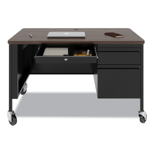 Mobile Teachers Pedestal Desks, Right-Hand Pedestal: Box/File Drawers, 48" x 30" x 29.5", Walnut/BlackMobile Teachers Pedestal Desks, Right-Hand Pedestal: Box/File Drawers, 48″ x 30″ x 29.5″, Walnut/Black