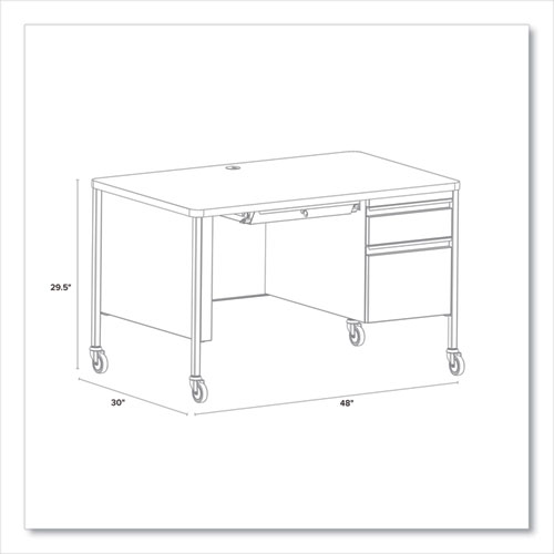 For commercial-grade desks designed specifically with the modern classroom in mind, choose Hirsh Industries® Teachers Pedestal Desks. As they’re uniquely tailored to educational environments, professors, teachers, guidance counselors and administrators can all reap benefits. Each desk’s easy to clean, laminated worksurface features rounded corners and a protective T-mold strip. Color-matched, heavy-gauge steel pedestals, legs and privacy panels attractively offset the worksurface while ensuring sturdy performance. All drawers employ a full-extension, precision ball-bearing suspension system to allow each drawer to open and close both fully and smoothly. The pencil drawer’s centralized core-removable locking system helps keep desk contents secure while allowing for all-keyed-alike convenience (keyed-alike option is limited to Hirsh Industries® components). Leveling glides accommodate uneven flooring. Legs ship unattachedminimal assembly required.