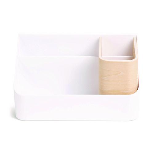 Mod All-in-One Desktop Organizer, 4 Compartments, 5.39 x 9.65 x 5.08, Plastic/Wood, WhiteMod All-in-One Desktop Organizer, 4 Compartments, 5.39 x 9.65 x 5.08, Plastic/Wood, White