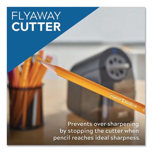 Featuring a fast, break-resistant sharpening action, School Pro® sharpeners minimize the time students spend sharpening, so they can devote more time focusing on what matters. Taking woodcase pencils to a precise tip, every time, the Fly-Away Cutter automatically stops when a pencil has reached its ideal sharpness. SafeStart® electric motor locks the blades in place when the extra-large, easy-to-empty shavings bin is removed. Manual-adjust, six-size-dial, with clearly labeled size indicators, fits nearly any pencil. Slip-resistant bottom ensures an easy, steady-as-she-goes experience. Compatible with colored pencils. Stay sharp with X-ACTO®!